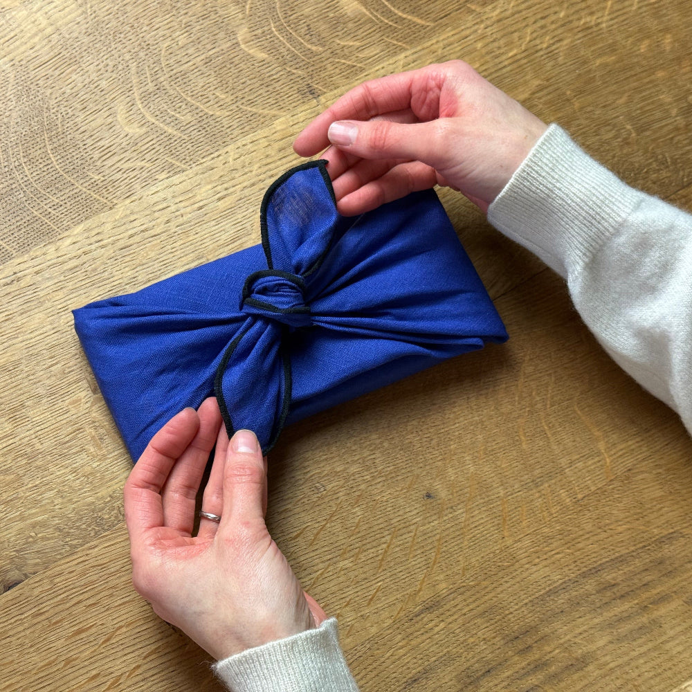 Une fois dénoué, le carré de lin peut ensuite devenir une serviette de table, un bandana, un petit foulard ou un nouvel emballage cadeau.