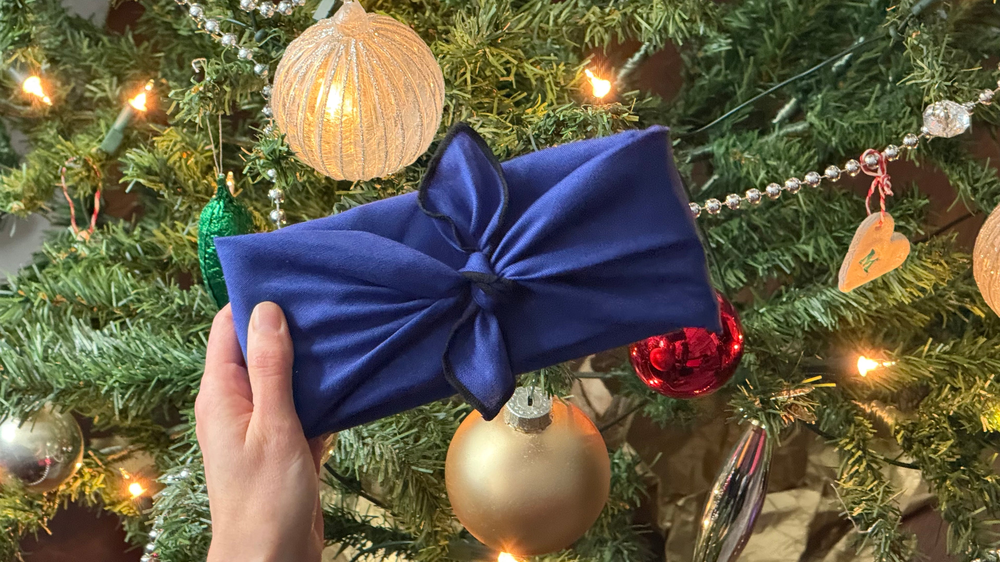 Til årets afslutning tilbyder vi et enkelt, smukt og virkelig praktisk alternativ til engangsgavepapir: en gaveindpakning i stof inspireret af furoshiki. Denne japanske teknik går ud på at folde og binde en gave med et stykke stof. Resultatet: en genanvendelig gaveindpakning, der gør indtryk, uden tape, uden bånd og især uden affald. Den store fordel: med denne holdbare, miljøvenlige og genanvendelige indpakning er stoffet en del af gaven og kan bruges i lang tid.