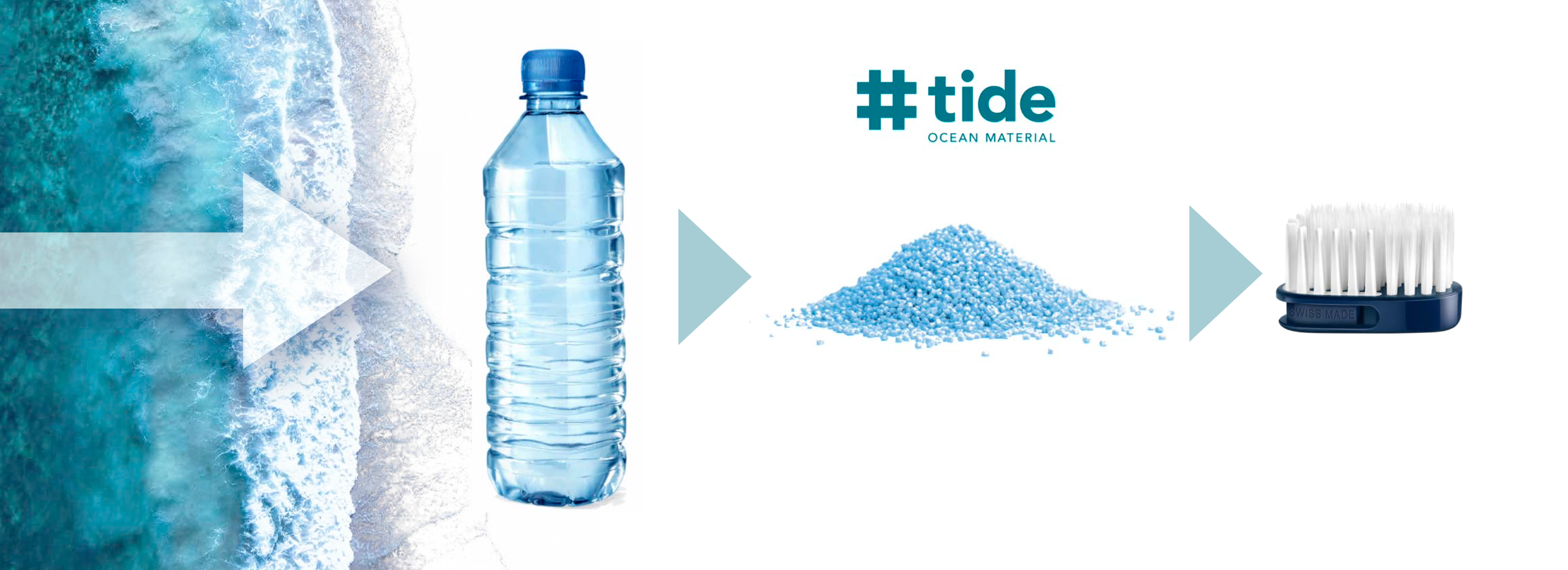#tide verwandelt das ocean-bound plastic dann in ein sicheres Premium-Material. Das #tide-Material wurde in enger Partnerschaft mit Wissenschaftlern der Schweizerischen Hochschule für Angewandte Wissenschaften in Rapperswil entwickelt und entspricht den Industriestandards REACH, RoHS und FDA. Es wurde mit dem deutschen Materialica Design & Technology Award 2019, dem Swiss Plastics Sustainability Award 2020 und dem Swiss Plastic Award im Jahr 2023 ausgezeichnet.