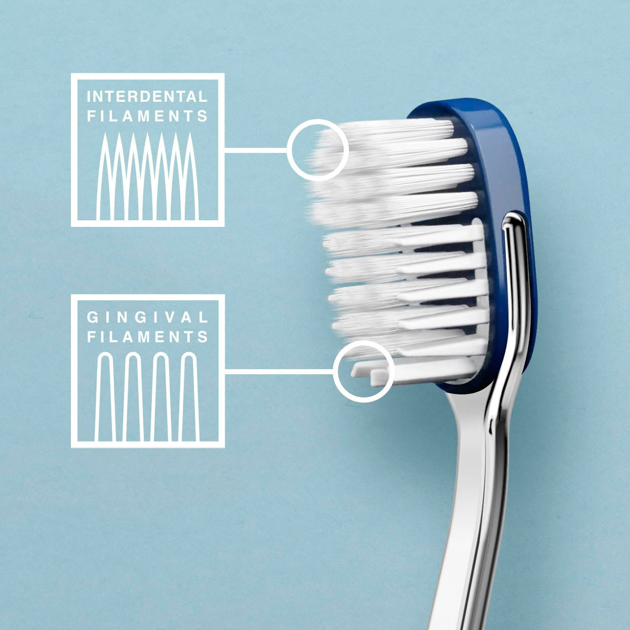 - A small line of transparent medium interdental bristles (0.20mm) that contribute to thorough plaque removal.