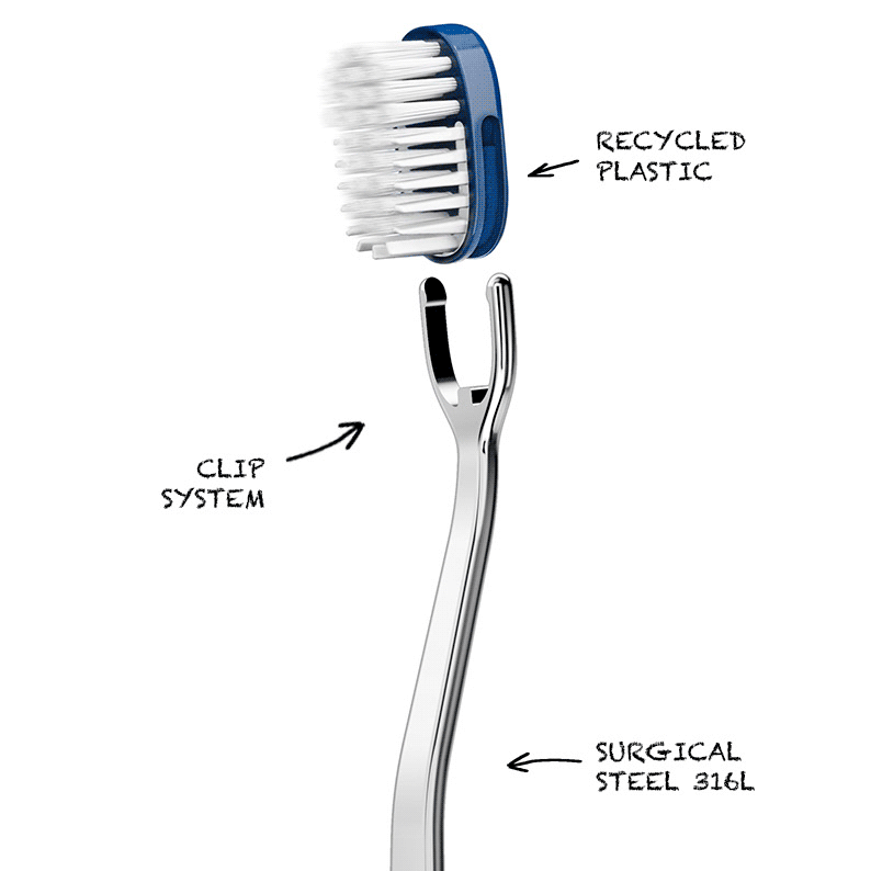 Before each brushing session, make sure the head is properly clipped on. Regularly wash the head and handle separately. To ensure incomporable hygiene, your Berninox toothbrush handle has been designed to be dishwasher safe (max wash cycle 70°C).