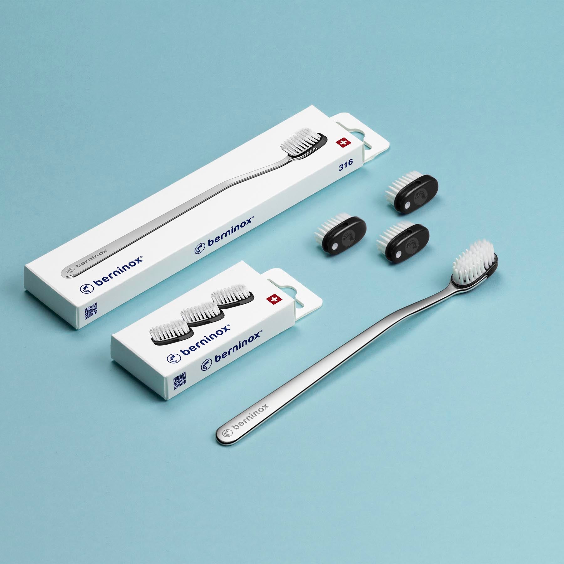 As a general rule, the FDI (World Dental Federation) recommends replacing your toothbrush every 3 months. However, the life of a toothbrush also depends on your brushing habits: if you are a more vigorous user, the bristles will wear out more quickly. When they start to bend, brushing becomes less effective, so it is advisable to replace your toothbrush at this point. With your Berninox you keep the handle and only replace your toothbrush head. Washing your toothbrush regularly will help maintain good dental hygiene but will not increase the life of your Berninox toothbrush head.