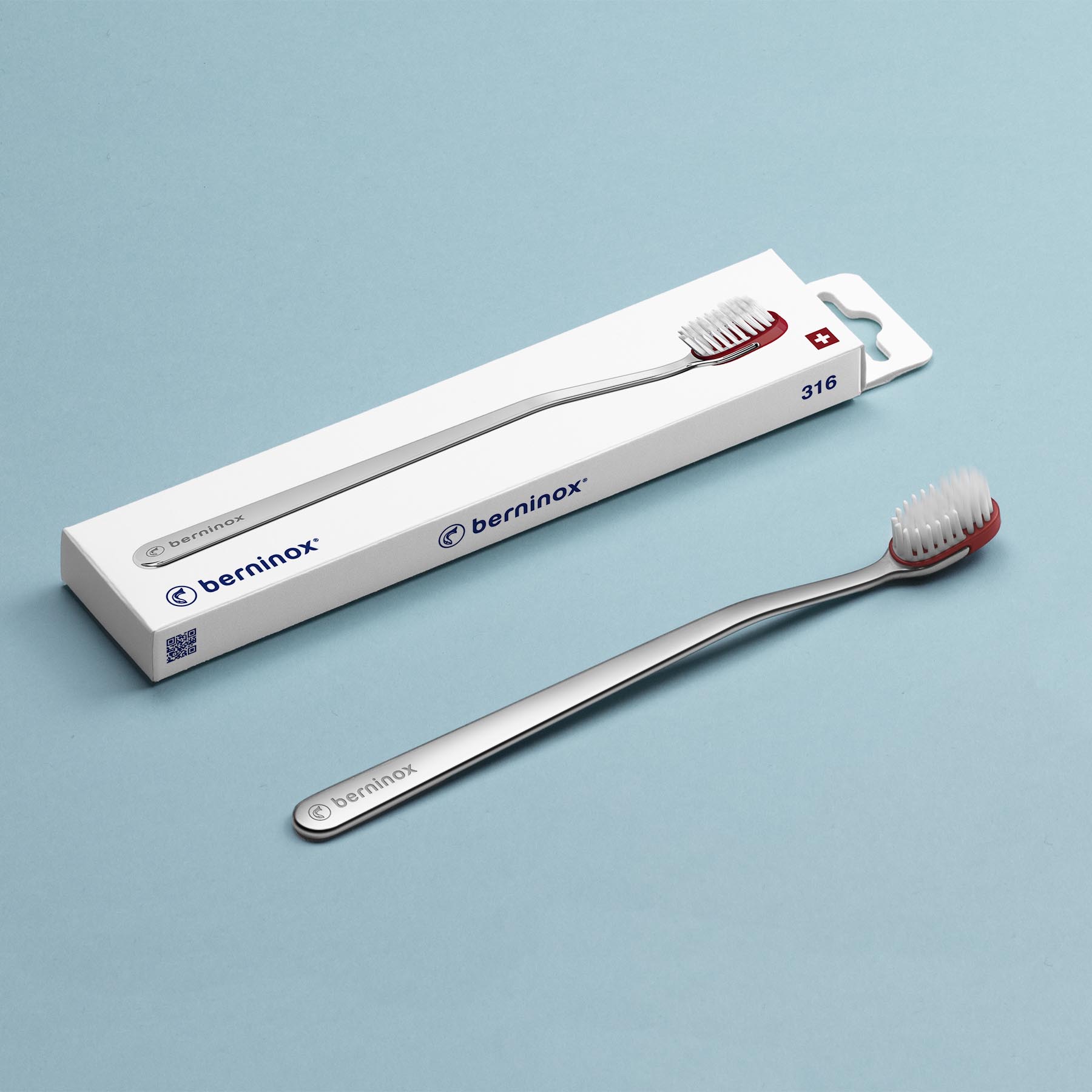 Assicurarsi che la testina sia ben fissata prima di ogni spazzolamento. Lavare regolarmente la testina e il manico separatamente. Per un'igiene ottimale, lo spazzolino Berninox è stato progettato per essere lavato in lavastoviglie (ciclo di risciacquo max. 70°C).